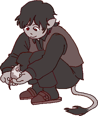 Sprites are usually solitary creatures, and leave their parents to find a new territory as soon as they reach adulthood. When Yarrow started on his journey to independence, he found an abandoned cottage in a forest unoccupied by other sprites, and decided to claim it. He found himself journeying to the nearby town of Wynwood and became fascinated by human life. The humans were wary of his presence but would not dare to attack him as they didn't know what he was capable of. Rumour had it that he was some kind of vampire, on account of his sharp canines.